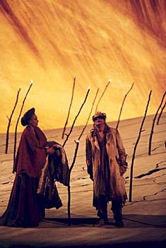 Ecrit pour José Van Dam, le rôle-titre est profond et douloureux. Réalisant un long parcours initiatique à la quête de lui-même, l'Œdipe que les auteurs lui ont concocté est de la dimension du Saint François d'Assise de Messiaen, dont la figure tutélaire marque la partition de son empreinte. Atonal, parfois rude et âpre, le langage musical de Bartholomée est accessible et expressif. Mais les deux premiers actes sont par trop narratifs, ce qui leur donne le tour d'un oratorio, et il faut attendre les deux actes suivants, plus particulièrement le dernier, pour ressentir une véritable émotion dramatique. Pourtant, dans la sobre mise en scène de Philippe Sireuil et sous la direction attentive de Daniele Callegari, la distribution est excellente. A commencer par José Van Dam, chanteur-acteur que l'on sait. Valentina Valente est une fière Antigone, Jean-François Monvoisin campe un ardent Clios, et Hanna Schaer une tendre Diotime.
