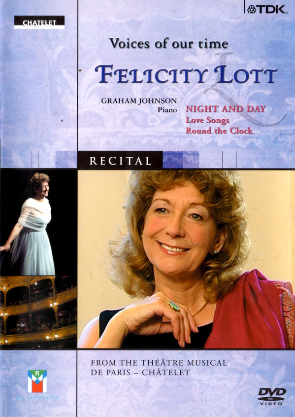 Pour ses débuts, la Collection « Voices of our Time », éditée par TDK, constituée de récitals enregistrés au Théâtre du Châtelet, nous offre un récital de Felicity Lott accompagnée par le pianiste Graham Johnson. Ce choix est tout à fait judicieux et logique tant le public parisien, et celui du Châtelet en particulier, a adopté cette cantatrice. Qui n'a pas été captivé par son interprétation du rôle titre de la Belle Hélène ?