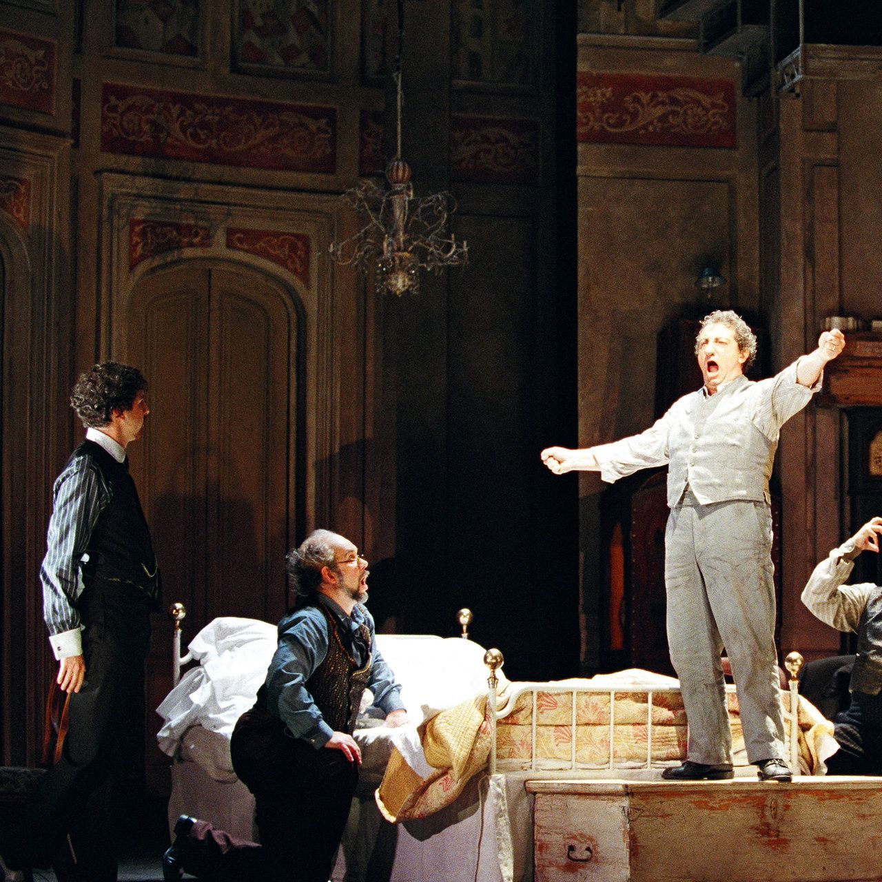 Après le long pique-nique où chacun était libre de ne pas respecter le thème imposé de la soirée, le dessert était plus méditerranéen avec le très solaire Gianni Schicchi extrait de Il Trittico de Puccini. Matilda Leyser faisait le trait d'union avec le précédent en donnant au cadavre du pauvre Buoso une dimension assez comique. Située dans la concavité du décor précédent, l'acte puccinien était transposé à l'époque de sa création à New York en 1918. Beaucoup d'Italiens dans la distribution et, comme à Paris récemment (voir article sur le site), c'est Alessandro Corbelli qui donnait un relief particulièrement réussi au personnage éponyme. Mais l'ensemble de la distribution très italienne était très bien équilibré même si l'on distinguait plus nettement parmi les silhouettes de cette impayable famille en mal d'héritage la Zita de Felicity Palmer et la Ciesca de Marie McLaughlin ainsi que le Rinuccio très charmeur de Massimo Giordano. Mais, là encore, les plus grands éloges vont au chef russe Vladimir Jurowski, Directeur musical du festival et qui, pour sa troisième saison à Glyndebourne, cette fois à la tête du London Philharmonic Orchestra, a fait preuve de sa grande habilité de chef et d'un bel éclectisme devenu rare en ces temps de spécialisation forcenée.