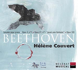 Ludwig van Beethoven (1770-1827) : sonates pour piano n°1 opus 2 n°1, n°13 opus 27 n°1 et n°28 opus 101. Hélène Couvert, piano. 1 CD Zig-Zag Territoires ZZT 041001 (distribué par Harmonia Mundi)