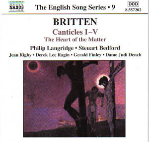 On manque de superlatifs pour qualifier l'ensemble des interprètes de ce CD. Langridge, Reagby, Ellis et surtout Bedford sont tous familiers de la musique de Benjamin Britten, quand ce ne fut pas de l'homme lui-même ou de son compagnon de toujours, Peter Pears. Gerald Finley et Derek Lee Ragin, moins connus dans ce répertoire, ne déméritent pas. L'éditeur Naxos ressort comme à son habitude à prix réduit ce fantastique enregistrement issu de l'intégrale de l'œuvre de Britten entreprise il y a une dizaine d'année par Collins Classics, aujourd'hui introuvable. Une alternative aux autres excellents enregistrements tous sans the Heart of the Matter, par Ian Bostridge et Julius Drake (1 CD Virgin « à prix fort » avec les Folksongs), Anthony Rolfe-Johnson et Roger Vignoles (1 CD Hyperion avec les Divines Hymns de Purcell) sans parler de la version des créateurs Britten/Pears (1 CD Decca London, avec les Divines Hymns de Purcell).