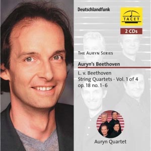 Le Quatuor Auryn, relativement méconnu en France et en Belgique, ses concerts y étant fort rares, jouit d'une excellente réputation dans le monde germanique et en Amérique du Nord, y recevant des invitations prestigieuses : Carnegie Hall, Philharmonie de Cologne, Concertgebouw d'Amsterdam, Festivals de Salzbourg, de Bonn, … Parmi ses nombreux enregistrements chez CPO et chez Tacet, on trouve les intégrales Schubert, Bartok et Schumann et des disques consacrés à Wolf, Britten ou Mendelssohn, … Qu'ils décident de s'attaquer à cet Himalaya discographique que représentent les quatuors de Beethoven est logique, et bien que leur discographie soit d'une richesse exceptionnelle, entre les quatuors Vegh, Alban Berg, Talich, Italiano et tant d'autres, on leur fera une petite place pas loin de toutes ces grandes versions.