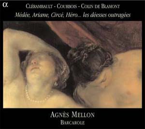 A une très sensible interprétation qui dévoile l'infinie palette des climats psychologiques, Agnès Mellon ajoute une sorte de photographie musicale des années 1710 où ressort l'indiscutable créativité des auteurs lyriques dans le cadre plus intimiste de la cantate : aux côtés de la « Grande Machine Versaillaise », voici de petits joyaux chambristes dont l'effectif réduit ne cède rien à l'éloquence ciselée de l'instrumentation. Est-ce en liaison avec la personnalité d'une mécène exigeante, La Duchesse du Maine, ici dédicataire des cantates Ariane et Circé? Aussi impliqués que la chanteuse, les musiciens de Barcarole soulignent avec une grâce mordante l'expressivité incandescente des textes. Bercement douloureux de la flûte d'Amélie Michel dans le superbe lamento d'Ariane du trop méconnu Philippe Courbois ; complicité impétueuse du violon d'Alice Piérot et du clavecin de Kenneth Weiss tout au long du programme en particulier : invocation infernale de Circé et rancœur vengeresse de Médée.