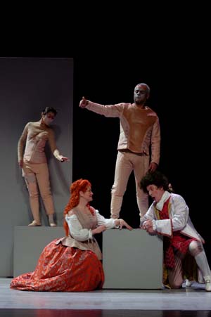 Bernard Deletré et Alain Buet assurent sans problème leur partie, tandis que Dominique Visse, tout en tortillements, fait un numéro de souris de dessins animés assez vite ennuyeux. La palme de la distribution ira à Ingrid Perruche, soprano en pleine gloire vocale, au gosier agile, aux aigus pleins de panache et à la projection impeccable. On regrettera seulement qu'elle ne soit pas encore capable de véritablement colorer son chant et de varier son expression, et qu'elle manifeste une certaine tendance à crier dans le suraigu. Elle campe une Poppée fine mouche, très sensuelle, et justifie pleinement sur la scène tourquennoise son récent titre de révélation lyrique des Victoires de la Musique.