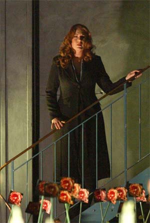 Il en fut de même ce soir-là au lever de rideau du Chevalier à la rose lorsque est apparue une scène recouverte de photos de roses accrochées à des centaines de tiges bien trop figées. Surprise agréable, clin d'œil publicitaire durant les premiers instants mais, un peu comme le comique de répétition, ce décor de répétition n'a cessé de nous lasser acte après acte. Comment le grand Strauss n'a-t-il pas suscité plus de diversité et plus de réflexion de la part de Johannes Leiacker et de Philipp Himmelmann ? Des roses et des roses à n'en plus finir, qui tombent petit à petit sous les pas des chanteurs, entraînant la plupart du temps un risque de chute, principalement pour les malheureuses dames dont les robes ne peuvent que s'accrocher à ces jolies fleurs qui se transforment en réel piège telles des fleurs carnivores! Ainsi, il nous a été donné d'admirer systématiquement en fin d'acte un véritable champ de bataille, loin de toute subtilité viennoise.