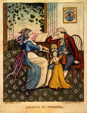 En 1760 paraissaient les Fragments of Ancient Pœtry d’Ossian, œuvre d’un barde écossais du troisième siècle, traduits et augmentés par Macpherson. Dès lors la nature transfusera à l’artiste l’émotion de l’âme, le goût pour le Moyen Âge, le mystère, la mélancolie et le sublime. Un an plus tard Jean-Jacques Rousseau fait paraître La Nouvelle Héloïse dont la sentimentalité fait un pas entre la Manon Lescaut de Prévost et les débuts du romantisme. Hogarth avait créé en Angleterre la peinture moraliste et théâtrale, fondée sur l’observation des mœurs et la caractérisation des individus. La poésie allemande s’impose. Klopstock, « le divin Klopstock », canonisé dans son pays comme le « poète de la religion et de la patrie » avait produit une grande fresque épique centrée sur le thème du Messie. Enfin, Klinger avait intitulé une de ses pièces Sturm und Drang. Le nom est resté pour désigner le mouvement littéraire du romantisme allemand. Tous ces éléments se retrouvent en filigrane dans l’œuvre de Gœthe. Il fut le génial animateur du romantisme avec Gœtz de Berlichingen, rédigé à Wetzlar, petite ville allemande où se déroule le drame de Werther. Autobiographique en partie, complétée par un fait vécu, cette œuvre sincère est mue par le seul désir morbide. Les Souffrances du jeune Werther sont à l’origine du mouvement romantique européen, ouvrage paru en 1774 avec cet avertissement : « Sois un homme, et ne suis pas mon exemple ! » L’ombre de Werther est malheureuse. Du roman épistolaire, les trois librettistes, Édouard Blau, Paul Milliet et Georges Hartmann en tireront un excellent livret, une adaptation scénique digne de l’œuvre de Gœthe.