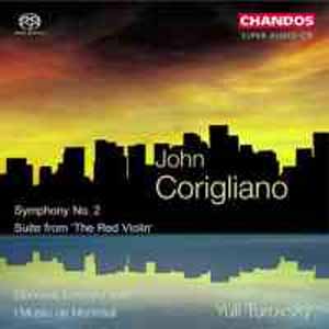 John Corigliano (né en 1938) : Symphonie n° 2, pour orchestre à cordes ; Suite orchestrale pour le film « The Red Violin » pour violon solo, timbales, percussion, harpe et cordes. Violon : Eleonora Turovsky. I Musici de Montréal, direrction : Yuly Turovsky. 1 CD Chandos CHSA 5035. Enregistré en l’Eglise de la Nativité de la Sainte Vierge, La Prairie, Québec, 15-17 septembre 2003. DDD. Notice (anglais, allemand, français). Durée : 62’28