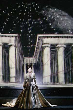 René Jacobs, pour la saison précédente, a étudié et imposé ses idées musicales reprise par Piers Maxims. Et des idées, René Jacobs n'en manque pas! Les tempi sont rapides, beaucoup trop rapides! Durant l'ouverture, le chef pousse les musiciens dans leurs derniers retranchements, à la limite de l'articulation, ce qui occasionne quelques petits accrocs inéluctables. On reconnaît le passé de « baroqueux » du chef, dans l'approche des phrasés secs, auxquels l'orchestre n'est pas habitué. A cette vitesse, la Marsch der Priester, O Isis und Osiris ou In diesen heil'gen Hallen de Sarastro perdent leur côté solennel. Pamina n'échappe pas à cette patinoire musicale dans Ach, ich fühl's pour ne citer que cet air. Aucune des voix n'est épargnée par la rapidité des tempi et elles trouvent difficilement leurs marques. Une autre idée déplaisante est l'ajout d'effets sonores tels que des coups de gong pour annoncer, par exemple, le premier air de la Reine de la nuit ; où des bruits de bourrasque, et des percussions insolites, avant le Alles fühlt der Liebe Freuden. La musique de Mozart n'a vraiment pas besoin de ces prémices pour illustrer de manière convaincante la rage de Monostatos. Parmi les innovations de René Jacobs, on retrouve, durant les récitatifs, quelques improvisations au « Hammerklavier ». Celles-ci, même si elles sont intéressantes musicalement se transforment parfois en scènes mélodramatiques du plus mauvais goût. La vitesse duZu Hilfe! Zu Hilfe!met d'ores et déjà Tamino dans une situation vocale difficile ; et son manque d'aigus se fait ressentir par moments. Son timbre s'améliore toutefois au long de sa prestation. Après le premier air de Papageno, musicalement douteux, par certains rallentendi étranges et des couacs dans les réponses des cors, Stephan Loges nous offre une très belle prestation. Sa diction est intelligible, et son rôle d'acteur se marie bien avec la machinerie de Kentridge.