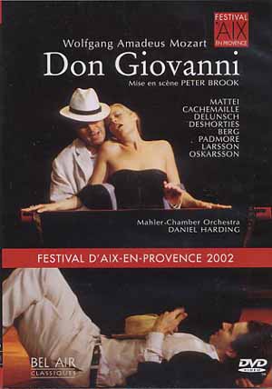 Bel Air Classique propose en DVD la retransmission du Don Giovanni relativement controversé du festival d'Aix en Provence 2002, controverse provenant principalement de la direction de Daniel Harding, brutale, pressée, hors propos, ne dégageant ni angoisse ni mystère.