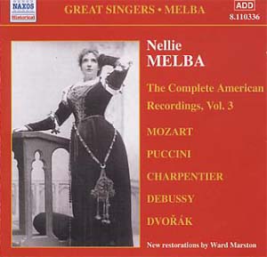 On prend l'objet entre les doigts, c'est une pochette de CD rouge, avec le nom de Nellie Melba en lettres blanches. On pense qu'il s'agit d'un enregistrement Malibran, firme spécialisée dans les résurrections des interprétations passées, pas du tout, il s'agit bel et bien d'un produit Naxos.