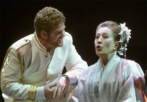 L'Opéra de Québec a frappé un grand coup avec cette première production de la saison. Empressons-nous de dire que l'enthousiasme était au rendez-vous. Une salle comble, de quoi réjouir le directeur du théâtre et tous les sponsors. On annonce que toutes les représentations se feront à guichet fermé ! Comment résister au succès ? Mais celui-ci n'est pas immérité. Il le doit à la collaboration de tous. L'honneur en revient à Lyne Fortin qui campe une Cio-Cio-San fort crédible dramatiquement et vocalement superbe. C'est une prise de rôle, on serait plutôt tenté de croire à la réincarnation de Cio-Cio-San, si le mot ne portait pas à confusion. Elle réussit dès son entrée sur scène à nous envoûter, successivement en adolescente naïve, d'une fidélité à toute épreuve ; de l'épouse heureuse et à la passion amoureuse sublimée ; de la femme déterminée qui repousse les avances d'un prétendant ; de la geisha qui s'interroge – l'œil posé sur le télescope scrute le néant de sa propre vie – enfin la mère anéantie qui transcende son propre destin en se donnant la mort. Son parcours devient lucide, convainquant, prémonitoire. Mais toutes les facettes du personnage sont rendues grâce à une implication vocale de premier plan. Le duo d'amour de la fin du premier acte, «Bimba, dagli occhi pieni di malia»…»Somiglio la Dea della luna» tout en arabesques, – c'est le nouveau marié qui essuie les larmes de la jeune épouse et l'amène à la préparation de la nuit de noces – lui fait écho, le duo des fleurs avec Suzuki «Scuoti quella fronda» qui semble se refermer comme le paravent des illusions. C'est aussi au deuxième acte, dans l'air célébrissime «Un bel di, vedremo» avec ses irisations, ses attaques dans les aigus sans filet, que la voix joue sa vie et semble un prélude au destin tragique de l'héroïne. Le point culminant en est l'autre air au troisième acte, «Tu, tu, tu, piccolo Iddio !» comme on berce un enfant, jusqu'à la dernière phrase «Va. Gioca, gioca. » C'est le cœur d'une mère qui se brise et l'amante inconsolable qui s'ouvre le ventre.