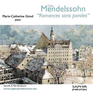 Marie-Catherine Girod, est généralement saluée dans le choix original et non conformiste de ses répertoires. S'attaquer aux romances sans paroles de Mendelssohn n'est certes pas nouveau, mais ici, le détour en vaut la peine. Elle fait véritablement « chanter » son piano, le son est généreux, le toucher très juste, de plus les tempi sont judicieusement choisis. Que dire, si ce n'est que tout le CD est envoûtant, rien à dire sur la technique qui ne vire jamais en virtuosité excessive. On sent véritablement une artiste clairement passionnée et investie dans son jeu. Rien n'est laissé au hasard. Ses romances sans paroles nous laissent décidément sans voix.