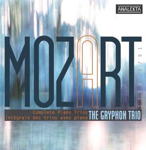 Les Trios pour piano, violon et violoncelle, marquent une étape importante dans l’élaboration de la musique de chambre, moins par la quantité que par la qualité de quelques-uns. Ils s’inscrivent dans la lignée de ceux de Joseph Haydn, sans toutefois rien leur devoir. Partout nous retrouvons la même transparence, du Trio n°1, conçu en 1776 aux trois derniers de 1788. Mais, dès le Trio n°2, en Sol majeur de 1786, une mutation s’est opérée, en l’occurrence, l’évolution d’un langage stylistique plus resserré, une dimension plus dramatique, une autonomie des cordes, absente jusque là, par rapport au piano. Le Gryphon Trio donne toute sa mesure, particulièrement le violoncelle de Roman Borys qui dans l’Andante, semble converser et s’émanciper totalement sur le thème et variations de l’Allegretto.