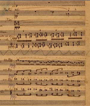Extrait de la partition manuscrite du Chant du ramier. Crédit photographique : © Arnold Schönberg Center/Universal Editions, Vienne