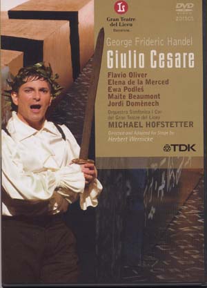 Georg Friedrich Haendel (1685-1759) : Giulio Cesare. Mise en scène, décor, costumes : Herbert Wernicke. Avec : Flavio Oliver, Giulio Cesare ; David Menéndez, Curio ; Ewa Podles, Cornelia  ; Maite Beaumont, Sesto ; Elena de la Merced, Cleopatra ; Jordi Domènech, Tolomeo ; Oliver Zwarg, Achilla ; Itxaro Mentxaka, Nireno ; Héctor Manzanares, le crocodile. Chœur du Liceu (chef de chœur : William Spaulding), Orchestre symphonique du Liceu, direction : Michael Hofstetter. Réalisation : Herbert Wernicke. Enregistré en juillet 2004 au Liceu de Barcelone. Sous titrages en anglais, allemand, français, italien, espagnol. 2 DVD TDK 24121 00140. Zone 0. 216 minutes.