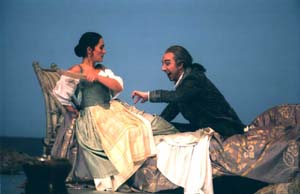 Il fallait, pour que le pari soit réussi, une distribution également convaincue et prête à jouer ce jeu à la fois distancié et littéral. C'est une réussite… à une exception près. En effet, Tomislav Muzek, acteur malhabile et chanteur médiocre, détonne vraiment – dans tous les sens du terme : « Un aura amorosa » est fâché avec la justesse. Mais les femmes forment un ensemble homogène et remarquable. Sophie Koch égale ici son Cherubino ; même énergie remuante, mimiques et œillades pleines d'esprit, voix magnifique. Est-elle vraiment la coquette de comédie, accueillant avec complaisance les égarements du cœur et de l'esprit. Tamar Iveri, plus introvertie que sa turbulente sœur, atteint à une troublante sincérité dans ses airs, que sa Tatiana un peu timide dans Eugène Onéguine il y a deux ans ne laissait pas espérer. Et quel chant! Nuancé, virtuose, émouvant ; son timbre s'apparie de plus très bien avec celui de sa Dorabella et l'on sent entre les deux chanteuses une réelle complicité et une vraie complémentarité. Anne-Catherine Gillet est une Despina simplement hilarante, piquante, poseuse, pleine de malice, encore plus extravagante que ses maîtresses. Le timbre est mince, mais joli, et ces fanfaronnades d'un tempérament que l'on sent naturellement porté vers la comédie, font de son personnage, non une rouée manipulatrice, mais une servante de Goldoni, une « Soubrette d'esprit ». Le Guglielmo de Brett Polegato est de la même eau : sourire fat et conquérant, il incarne avec une grande aisance scénique ce jeune niais suffisant qui joue à l'affranchi. Et sa solidité vocale écrase les faiblesses de son camarade. Au-dessus de ce petit monde de comédie, plane l'ombre décharnée de l'Alfonso de Carlos Chausson. Pour Strehler, il n'est plus l'habituel philosophe de campagne, sorte de Don Juan retraité, mais un aigrefin un peu râpé qui a trouvé deux gogos à plumer en s'amusant à leurs dépens. Personnage ambigu, filou sympathique, un peu philosophe et beaucoup voleur, qui semble tout droit sorti du Pigeon de Monicelli. Sa voix a toute l'autorité et le tranchant qui conviennent à ce personnage somme toute plus cynique qu'amusant.
