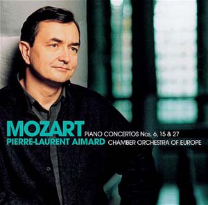 Le pianiste Pierre-Laurent Aimard est avec Hélène Grimaud et Jean-Yves Thibaudet, le seul pianiste français à enregistrer régulièrement pour une multinationale du disque. Ce mérite est d'autant plus grand que ses disques ne font pas dans la facilité : Ives et Carter côtoient Ravel, Debussy et Beethoven. Cette consécration n'est que justice tant le talent et l'intelligence du jeu de cet artiste en font un des pianistes les plus pertinents du moment. Nikolaus Harnoncourt ne s'y est pas trompé en lui confiant le clavier de son intégrale des Concertos pour piano de Beethoven. Depuis cet enregistrement, une confiance s'est instaurée entre les deux artistes et le pianiste est fréquemment invité à se produire dans le cadre du festival Styriarte de Graz dont le grand chef d'orchestre est directeur artistique. L'été dernier, Pierre-Laurent Aimard enregistrait live ce programme de concertos écrits dans la tonalité de si bémol majeur. Ce parcours est chronologique car l'on débute avec le Concerto n°6. Composée en 1776, cette pièce se caractérise par l'habileté de son écriture et son grand raffinement sans pour autant dépasser le statut documentaire par un trop grand respect des codes. Le Concerto n°15 de 1784 est une partition d'un tout autre niveau dont la clarté du ton et l'utilisation magistrale des vents frappent les oreilles. On ne présente plus le Concerto n°27, dernier concerto pour piano du compositeur. Sa nostalgie et sa légère mélancolie alliées à la fluidité et la transparence du discours composent une musique aussi dramatique que fascinante.