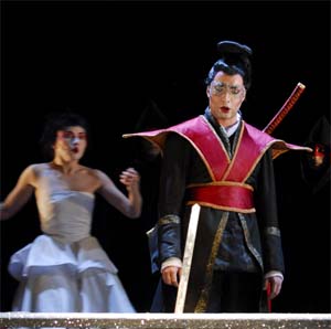 Car on en vient à se demander s'il était bien nécessaire de monter l'opéra après sa version de concert. La mise en scène, pseudo-intellectuelle, affirme vouloir retrouver « une certaine dignité ». On se demande laquelle. La violence le dispute à la bêtise. La fureur de Corésus est illustrée (quel didactisme! au moins le spectateur aura bien compris…) lorsqu'il lacère une femme sous les éclairs des stroboscopes (oui, on pense à une chanson mais ce n'est pas un air d'opéra mais de la variété des années 90). Les costumes hésitent entre Tigre et Dragon (pour ne pas dire Bioman) et Star Wars : mais pourquoi les prêtres de Corésus ressemblent-ils à Dark Maul? Callirhoé à Padmé Amidala? et que dire du pauvre Agénor, avec ses habits fluos de samouraï et ses semelles compensées? Cette mise en scène confère à l'œuvre une désespérante froideur. Froideur que peine à conjurer la scène champêtre du quatrième acte. On attend donc plutôt l'enregistrement et la suite du programme baroque concocté par Hervé Niquet.