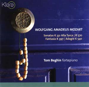 Wolfgang Amadeus Mozart (1756-1791) : Sonates en la majeur K. 331 et en si bémol majeur K. 570, Fantaisie en ré mineur K. 397, Adagio en si mineur K. 540. Tom Beghin, pianoforte. 1 CD ETCETERA Klara KTC 4015. Enregistré du 9 au 11 novembre 2005. DDD. Notice en anglais, français, allemand, flamand, sur l’instrument seulement. Durée : 73’
