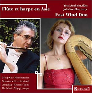 East Wind Duo, composé du flûtiste Yossi Arnheim et de la harpiste Julia Sverdlov, créé en 1995 et basé en Israël, a depuis longtemps convaincu de la qualité de son travail. Ses deux membres, première harpe et première flûte solos de l'Orchestre philharmonique d'Israël se mettent au service d'innombrables partitions occidentales où, comme lors du présent enregistrement, orientales.