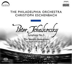 Eschenbach conçoit l'œuvre dans des tempi très amples et son interprétation avoisine la cinquantaine de minutes. Le chef d'orchestre prend un immense plaisir à s'épancher vers des sonorités de sa phalange. Dans cette optique l'Andante cantabile, con alcuna licenza apparaît un peu trop intentionné et chichiteux. D'autant plus qu'avec une prise de son démonstrative de présence et de profondeur, l'auditeur s'en prend plein les tympans ! Les autres mouvements sont mieux amenés : La progression des premiers et derniers volets est bien gérée tandis que la valse balance bien. Si l'on peut rester fidèle à nos chères références : Valery Gergiev (Philips), Herbert von Karajan (DGG), Evgueny Mravinsky (Melodiya et DGG), il faut saluer le retour à un haut niveau discographique d'une telle formation. Le minutage est complété par des extraits du cycle des Saisons sous les doigts d'Eschenbach qui reste un pianiste précis et subtil. Les différentes facettes de ces pièces sont idéalement rendues sans surinterprétation déplacée.
