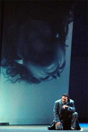 Venise. Fenice. 28-V-2006. Giuseppe Verdi (1813-1901) : Luisa Miller, opéra en 3 actes sur un livret de Salvadore Cammarano. Mise en scène : Alessandro Camera. Costume : Carla Ricotti. Lumière : Vinicio Cheli. Avec : Alexander Vinogradov, Walter ; Giuseppe Sabbatini, Rodolfo ; Ursula Ferri, Federica ; Arutjun Kotchinian, Wurm ; Damiano Salerno, Miller ; Darina Takova, Luisa ; Elisabetta Martorana, Laura ; Alessandro Giacon, un paysan. Orchestre et chœur du Théâtre de la Fenice (chef de chœur : Emanuela Di Pietro), direction : Maurizio Benini.