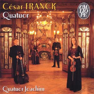 Ceci précisé, le moins que l'on puisse dire, c'est que le Quatuor Joachim ne fait pas dans le rabâché ! Déjà chez Calliope on lui devait de magnifiques versions des trois Quatuors et du Sextuor de Vincent d'Indy (CAL 9891. 2), et voici maintenant ces Quatuors de Franck et de Samazeuilh. Si l'œuvre de Gustave Samazeuilh reste encore – à tort ! – bien mal connue, on ne peut dire que le Quatuor à cordes en ré majeur (1889) de César Franck le soit tellement mieux, ceci probablement dû à ses difficultés d'exécution et d'intonation, mais surtout à ses vastes proportions (environ trois quarts d'heure) qui réclament concentration et endurance de la part de ses exécutants. Le cas de ce Quatuor est d'ailleurs singulier : créé à la Société Nationale de Musique en 1890, il obtint un succès tel que César Franck n'en avait jamais obtenu d'aussi spontané et chaleureux, ce qui dut réconforter notre Pater Seraphicus ; certaines compositions aujourd'hui bien plus célèbres, telles que les Variations symphoniques ou la Sonate pour piano et violon furent loin de recevoir, lors de leur première exécution, une telle approbation. Des intimes de Franck ont confié que « pendant toute l'année 1888 on put voir sur son piano les Quatuors de Beethoven, de Schubert et de Brahms ». Le compositeur resta en effet toujours fidèle au Romantisme et à l'Allemagne, ou plutôt l'Autriche dont sa famille était originaire. Mais c'est surtout l'ombre beethovénienne qui est omniprésente, et le principe cyclique novateur qui transparaît de manière éclatante dans son Quatuor à cordes, et qu'il appliqua également à son Quintette avec piano en fa mineur (1878-79) et sa Symphonie en ré mineur (1886-88), s'allie à merveille aux rappels thématiques, dans le Finale Allegro molto du Quatuor, des mouvements précédents, hommage non déguisé à la Symphonie n°9 du vieux maître de Bonn.