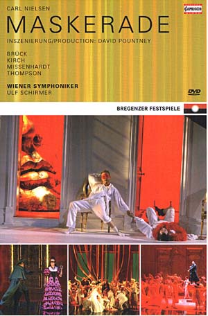 Carl Nielsen (1865-1931) l'acheva en 1906 à partir d'un livret dont Vilhelm Andersen avait trouvé toute sa substance dans la fameuse comédie éponyme de Ludvig Holberg (1724). En visionnant la mise en scène – mi-respecteuse du passé, mi-moderne, mais à tout instant plausible et cohérente de David Pountney – l'ampleur et l'intelligence de la conception ne laisse aucun doute. Les costumes flamboyants, les décors mobiles et très ingénieux et surtout le jeu fascinant des lumières rehaussent, si besoin en était, une mise en scène, certes assez traditionnelle, mais d'une remarquable efficacité. Un tel spectacle devrait offrir une nouvelle chance à cet opéra succulent et grouillant, de conquérir de nouveaux adeptes. Chanté en allemand par une fine équipe d'interprètes plus qu'impliqués, tant au niveau du chant que du jeu théâtral, le déficit dû à l'abandon du danois originel se trouve compensé par les qualités suscitées. L'Orchestre symphonique de Vienne, placé sous la direction expérimentée du chef allemand Ulf Schirmer, car ayant déjà enregistré une excellente version de Mascarade (en danois) avec une autre équipe et l'Orchestre symphonique de la Radio danoise (Decca, 1996) couronne le tout avec brio et un engagement de tous les instants. Les deux lectures du chef viennent opportunément enrichir les anciennes réalisations, plus idiomatiques sans doute, mais peut-être moins brillantes, de Launy Grøndahl (Danacord, 1954) et de John Frandsen (Unicorn, 1977).