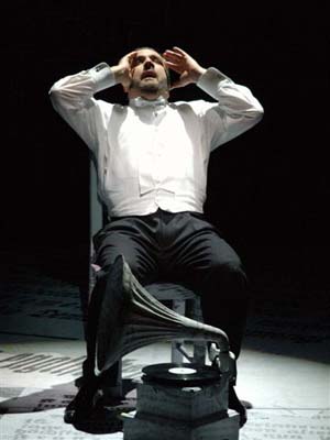 L'œuvre est redoutable à mettre en scène, car le livret prévoit, entre autre, une montagne de femmes nues et des flammes sur scène. Keith Warner et Es Devin, en scénographes expérimentés, conçoivent un surprenant cadre fait de pages de journaux mobiles. De manière fort subtile, ils envisagent cet opéra comme un troisième acte lointain du Don Giovanni de Mozart, d'ailleurs le rideau de scène, identique avec son panneau lumineux, apparaît comme abandonné depuis de nombreuses années par les tenanciers de l'hôtel qui servait de cadre à l'opéra de Mozart. Le séducteur y évolue au milieu des ombres de ses anciennes conquêtes suicidées. La direction d'acteur est d'une grande habileté et renforce les personnages, dans une partition où le kitsch et le grossier peuvent tout ridiculiser. Seul un tableau où sont écrits les noms des artistes «dégénérés» et les dates des journaux du décor fait allusion au contexte de la peste brune.