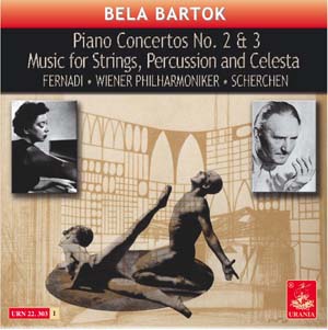 Béla Bartók (1881-1945) : Piano concertos n° 2 & 3, Music for Strings, Percussion & Celesta. Edith Farnadi, Piano. Orchestre Philharmonique de Vienne, Orchestre de la Radio Suédoise, direction : Hermann Scherchen. 1 CD Urania. Réf. : URN 22. 303/1. Enregistré en juillet 1953 à Vienne et à Stockholm le 23 octobre 1954. Notice réduite au strict minimum. Durée : 79’50.