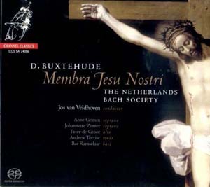 La musique de Buxtehude est d'une beauté austère. A l'écouter, on écarte parfois le texte pourtant si bien prononcé pour se concentrer sur le subjectif. Difficilement pensable qu'il s'agisse d'un petit chœur et pourtant… Avec cinq excellents chanteurs (Anne Grimm, Johanette Zomer, Peter de Groot, Andrew Tortise et Bas Ramselaar) et onze instrumentistes dirigés par Jos van Veldhoven toutes les nuances du texte sont exploré. On se délecte des dissonances, des faux-bourdons… Les musiciens, eux, apportent couleurs et chaleur par leur jeu intelligent de vibrato et d'ornementation.