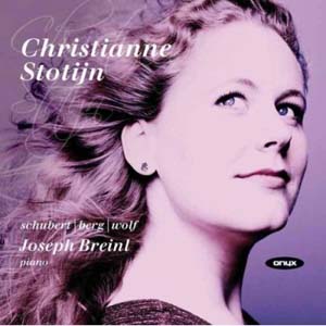 L'accompagnement ici joue parfaitement son rôle d'ombre de la chanteuse, ombre que l'on regarde parfois plus que la figure qui se tient devant, tant ces textes et ces atmosphères musicales nous entraînent au fond de nous-mêmes et nous incitent à la contemplation de ce qui traîne, de ce qui reste, de la trace invisible du son dans nos consciences. Christianne Stotijn est un produit typique de l'école du nord, un instrument vivant avec l'audace et l'imagination vocale d'une Anne Sophie von Otter. Elle réinvente pour nous Schubert, Berg et Wolf, y trouve sa nature, chaque fois différente, n'hésite pas à voiler sa voix, à la dissimuler sous un mezza-voce enivrant pour mieux se et nous délivrer lorsque le poème se dévoile enfin et nous confie son sens, longuement et savamment- chez Wolf- distillé. On succombera, sans remords, à ce disque intelligemment dessiné, à la pulsation retenue, volontairement, avec une jouissance rythmique parfaite, ce qui n'est pas un détail dans cette musique où le texte peut parfois faire oublier le tempo. Or, justement, ici le poème est chanté, par une voix qui a la souplesse d'un violon, les couleurs de la nuit, de l'inattendu, par une chanteuse qui est une musicienne incomparable et nous donne une interprétation qui ne peut que s'imposer et trouver sa place parmi les plus grandes.