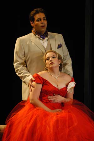 On pourrait reprocher à la Violetta de Yuli-Marie Williams un manque de justesse, mais la voix est fort belle et la soprano n'est pas dépourvue de talent. Elle est tout à fait remarquable au premier acte, avec un «E strano… Ah, fors'è lui… Sempre libera» avec les contre notes ajoutées, marqué d'un tonnerre d'applaudissements. C'est une interprète athlétique qui chante tout d'un bloc, ne ressent jamais la fatigue et laisse rarement paraître l'émotion dans la voix, que ce soit dans le duo avec Alfredo, «Un di, felice, eterea» ou celui, plus développé dramatiquement, avec le père Germont, «Pura siccome un angelo…Morro, ma la mia memoria». Finalement, la solitude de Violetta est un plat qui se mange froid. Elle fait fi de la maladie qui pourtant l'emportera. L'Alfredo de Dimitri Pittas est un ténor qui tient ses promesses vocalement. Gauche à son arrivée sur scène au premier acte, il se dégourdit assez vite avec le «Libiamo, libiamo». Mais que de distance, que de froideur entre les deux amants ! Quant à Giorgio Germont, tenu par le baryton Stephen Kechulius, si la voix détonne en maints endroits, il lui reste la prestance du père autoritaire et un affinement dans la progression de son rôle.