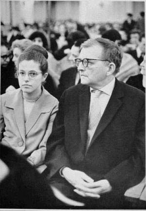 IC : En effet, il y a eu pas mal de similitude… comme moi, il a souffert de la faim – je ne savais pas quelle horrible famine la Russie des années 20 avait connue, Chostakovitch m'a donné à ce sujet un livre de l'écrivain leningradois Sémionoff qui décrivait cette période. Comme moi, il a connu d'abord la mort de son père, puis celle de sa mère. Nous étions tous les deux originaires de Leningrad, d'un milieu d'intellectuels, et tous les deux avions vécu le blocus. Dimitri Chostakovitch a été évacué vers Kouïbychev, moi aussi… et c'est là-bas que je commençais d'aller à l'école, c'est la première fois aussi que j'ai assisté à un spectacle au Théâtre du Bolchoï. Par la suite, nous nous rendîmes compte que nous habitions dans la même rue à Kouïbychev. Malgré le fait que nous nous soyons mariés tardivement, ce qui n'est pas évident, notre entente mutuelle s'expliquait en grande partie par ces coïncidences.