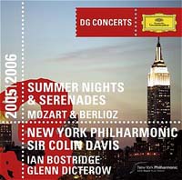 Le New York Philharmonic est déjà bien représenté avec trois titres dans la série des concerts DGG. Sir Colin Davis officie ici dans un programme Berlioz-Mozart, répertoire qu'il connaît comme sa poche. Son accompagnement des Nuits d'été est un modèle de style, d'attention et de poésie. Ian Bostridge chante bien, dans un français compris et convenablement articulé, mais comme d'habitude avec ce chanteur, on a plus l'impression d'un savant exercice de style que d'un moment de musique. Les choses se gâtent avec la Sérénade Haffner de Mozart. La moins réussie de la série des sérénades, cette pièce souffre des teintes assez raides et sèches de l'orchestre, conduit avec un sens du phrasé un peu ronflant et suranné par le vieux chef anglais. La prestation soliste du premier violon de l'orchestre est à l'image de ce concert : probe mais guère enthousiasmante. La restitution sonore est également assez décevante : les cordes sonnent de manière trop acide et le manque de réalisme global de ce travail est assez flagrant.