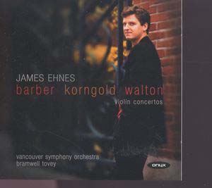 Avec sa sonorité ample, chaleureuse et sensuelle magnifiée par son superbe Stradivarius : le « Ex Marsick » de 1715, le violoniste James Ehnes se devait d'enregistrer ces partitions. La concurrence est relevée : Gil Shaham dans Korngold et Barber (DGG), Josua Bell dans Barber et Walton (Decca) sans oublier les versions historiques d'Isaac Stern (Barber) et Jascha Heifetz (Walton et Korngold), mais Ehnes sait trouver le ton juste sans verser dans le sentimentalisme narcissique. Il est aidé par un Orchestre de Vancouver puissant et précis sous la baguette attentionnée du chef d'orchestre Bramwell Tovey.