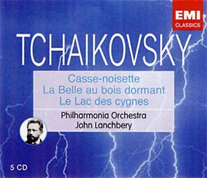 La précision, la chaleur et la féerie, la « dansabilité » et la lisibilité des interprétations de John Lanchbery en font des versions de référence d'autant plus précieuses qu'il s'agit d'une série vraiment économique : ces enregistrements de 1982, initialement réédités en 2002 par EMI en un album de 6 CDs « Classics for Pleasure » (5757592), sont l'objet de cette toute récente publication par EMI France qui a l'avantage de ne tenir que sur 5 CDs extrêmement bien remplis, au prix néanmoins – c'est le seul regret – de l'omission de quelques numéros (les n°18 [acte 2], 27 et 29 [acte 3] de La Belle au bois dormant ; n°10 et 14 [acte 2] du Lac des cygnes. Une petite et curieuse compensation à ces coupures – qui, précisons-le encore, ne sont pas la volonté du chef d'orchestre – provient de John Lanchbery lui-même qui a incorporé dans son Casse-noisette plus qu'intégral, parmi les célèbres danses du Divertissement de l'acte 2, une orchestration de son cru d'une Gigue d'une quarantaine de secondes dont nous n'avons pas pu trouver trace dans le catalogue des œuvres de Tchaïkovsky. Cette petite Gigue (danse anglaise) est insérée entre les célébrissimes Thé (danse chinoise) et Trepak (danse russe).