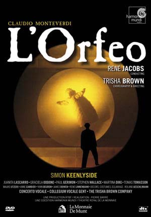 Cette production de l'Orfeo selon la chorégraphe américaine Trisha Brown fait partie des très rares productions « historiques » du mandat de Bernard Foccroulle à la tête du Théâtre Royal de La Monnaie de Bruxelles. Vu également à Aix-en-Provence où il sera encore repris cet été et sur d'autres scènes mondiales, ce spectacle frais et poétique est un grand moment de bonheur visuel. Alors que les relectures éventées d'opéras baroques pullulent, cette production montre qu'avec simplicité, humilité et modernité, il est encore possible de toucher et de servir une œuvre. Les chanteurs chorégraphiés avec soin sont rejoints par les solistes de la compagnie Trisha Brown. Les décors ultra-minimalistes et les éclairages ne sont pas sans évoquer l'univers de Bob Wilson mais avec ici une chaleur que l'on ne connaît pas toujours aux réalisations du metteur en scène américain.
