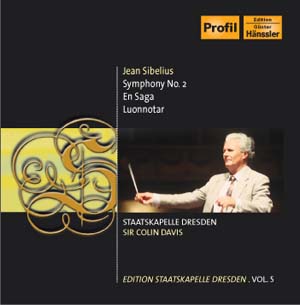 Les interprétations d'En Saga et de la cantate Luonnotar que nous proposent ici Sir Colin Davis et la Staatskapelle de Dresde datent de 2003, soit 15 ans après la Symphonie n°2. On y retrouve la même qualité de jeu et de prise de son, même si on est un peu sceptique vis-à-vis de la prestation d'Ute Selbig dans Luonnotar, dont on ne critique pas les qualités vocales incontestables, mais plutôt le timbre de voix et le style de chant, inappropriés selon nous pour cette œuvre tout à fait unique et glaçante de Sibelius. Mais cela reste un disque tout à fait recommandable pour ce qui est des deux œuvres orchestrales, desquelles Davis tire toutes les merveilles.