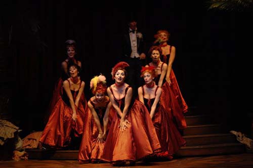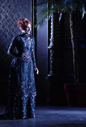 «Depuis qu'Eve écouta le malin, commença l'éternel féminin…» Du septuor des diplomates jusqu'aux saluts où notre chef chante le refrain à tue-tête, La Veuve joyeuse s'évertue à plaider la cause des malheureux hommes victimes d'un être incompréhensible mais à qui ils ne savent résister : la Femme. Et derrière l'apparente légèreté de la célébrissime opérette, qui montre un monde clos sur lui-même, les valses sucrées de la Vienne éternelle et un Paris stéréotypé, aux plaisirs canailles, derrière ces airs si connus et vite mémorisés, apparaissent les premières failles du régime austro-hongrois. Celui-ci est encore un vaste empire dont les beaux jours sont révolus et dont les territoires annexés commencent à revendiquer leur indépendance. C'est du moins ce qu'a souhaité montrer Franziska Severin, en plaçant sa production à la veille de la première guerre mondiale. Dès lors, les millions de Missia Palmieri ne sont pas seulement convoités pour sauver le royaume d'opérette de la banqueroute mais surtout pour pouvoir armer le pays en vue d'un soulèvement. Comme pour ses Noces – on ne change pas une équipe qui marche – c'est à Michael Scott que sont confiés les décors et costumes, somptueux, et à Wolfgang von Zoubek d'habiles lumières.