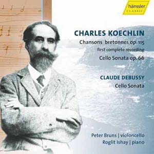 Au milieu des Chansons bretonnes vient s'immiscer l'unique sonate pour violoncelle de Kœchlin, composée, comme celle de Debussy, durant la Première Guerre Mondiale. L'œuvre va en se complexifiant, partant d'un doux climat impressionniste à un final avant-gardiste époustouflant, à la polytonalité et à l'écriture contrapuntique aventureuse. Malgré sa redoutable difficulté, Peter Bruns et Roglit Ishay donnent de cette sonate une interprétation solide et parfaitement bien maîtrisée. Tout aussi admirables sont-ils également dans la sonate pour violoncelle de Debussy, programmée en conclusion du disque, et qui donne l'occasion de comparer les deux univers à la fois si proches et si lointains de ces deux compositeurs français contemporains.