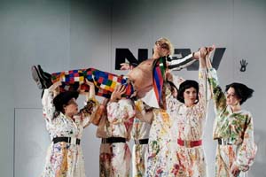 Cette comédie musicale bien enlevée en profite pour égratigner quelques milieux new-yorkais. Gloria et sa mère n'échappent pas aux coups de patte anti-féministes et anti-bourgeois, et le milieu snobinard de l'art n'est pas du tout épargné. Les costumes de Gloria et de sa mère sont des chefs-d'œuvre de kitsch américain. Quant à ceux de Savory et de sa secrétaire, ils sont très bien trouvés : Savory est à l'évidence Andy Warhol, et Molly est une assistante sans scrupules déguisée par Sonia Delaunay. Pour notre plaisir, elle est servie par le joli timbre de voix avec des nuances blues de Florence Pelly. La mise en scène offre des moments fort intéressants en manipulant quelques poncifs de la comédie musicale telle que nous la voyons de ce côté de l'Atlantique. Nous voyons défiler des personnages typiques, comme le cop de service, et quelques ballets, dont le réglage est parfois un peu approximatif. Les acteurs chanteurs sont bons dans l'ensemble, mais plus efficaces dans le jeu de scène que dans le chant. Néanmoins on garde un excellent souvenir d'un quatuor d'hommes au premier acte, qui a été très applaudi.