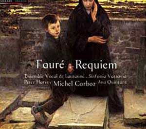 Gabriel Fauré (1845-1924) : Requiem op. 48 (version dite « liturgique » de 1893). Gabriel Fauré & André Messager (1853-1929) : Messe des pêcheurs de Villerville. Peter Harvey, baryton, Ana Quintans, soprano, Marcelo Giannini, orgue. Ensemble vocal de Lausanne, Orchestre Sinfonia Varsovia, direction : Michel Corboz. 1 CD Mirare MIR 028. Enregistrement réalisé à l’Abbaye Royale de Fontevraud. Notice multilingue très soignée (français, latin, anglais, allemand, espagnol). Durée : 63’.