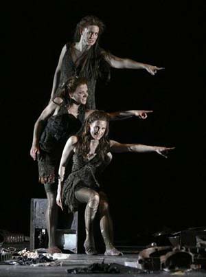 Les différents volets de cette production du Ring ont été créés à partir de décembre 2000 à Cologne, et ont également été vus à la Fenice de Venise. L'action est transposée dans un monde d'après catastrophe, avec champs de ruines et paysages désolés, dans lequel troupes régulières, dont Wotan est le général, et bandes armées se disputent les vestiges de la civilisation. La première scène fait un peu peur pour la suite : le Rhin est représenté par un dépotoir sur lequel règnent les filles, mi-prostituées mi-toxicos, collants troués, cheveux sales, envahies de poux et morpions. Le monde de ce Ring est misérable mais cohérent, le juste éclairage est trouvé pour que chaque scène soit bien caractérisée. Ainsi, le deuxième tableau de ce Rheingold est une réunion de chantier, sur lequel les ouvriers arrêtent leur travail dès que le maître d'œuvre fait mine d'hésiter à régler la facture. Quelques détails sont un peu inutiles mais dans l'ensemble la direction d'acteurs est intéressante et bien faite.