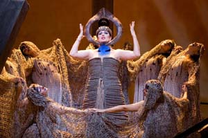 Au terme de ce spectacle d'ouverture de la soirée, la manière impressionnante imaginée par la mise en scène statique du cinéaste italien Roberto Andò, par les éclairages magnifiques et l'originalité des costumes de l'aussi metteur en scène Gianni Carluccio et surtout par le décor monumental du peintre et sculpteur Mimmo Paladino montrent un travail visuel embrassant le monde de la légende à celui de la réalité avec le lien commun de la défaite des femmes, pierre angulaire de tous les opéras.