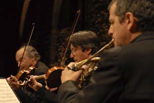 Avec les derniers quatuors, les deux grands trios et le quintette à deux violoncelles, l'octuor en fa occupe naturellement une place de choix dans la musique de chambre du compositeur. Œuvre de proportions considérables (en six mouvements ! Et d'une durée dépassant l'heure), elle exige d'abord une bonne homogénéité de l'ensemble instrumental : huit solistes qui « font leur numéro », ça craint, comme on dit familièrement. Mais nos musiciens, fort aguerris à la discipline chambriste, ne tomberont pas dans ce travers. Les talents individuels – indéniables – fondus dans un collectif d'exemplaires cohésion et connivence fournissent une version forcément convaincante ; même si on eût pu souhaiter, côté vents (clarinette, cor) – Ah ! Les habitudes d'écoute…– un peu plus de mœlleux, de « velours » dans le son, ici ou là. Mais la parfaite justesse d'intonation, la clarté du discours, le bel équilibre général, le brio de la technique instrumentale, autant de qualités réunies ici, confèrent à cette interprétation valeur d'incontestable réussite. Et s'il faut hiérarchiser les plans de réussite, on mettra volontiers en avant le populaire et joyeux Allegro vivace du troisième mouvement, superbement enlevé, de même que le quatrième mouvement Andante à variations, qui permet, plus ici qu'ailleurs, d'apprécier les qualités individuelles ; enfin, l'Andante molto de « clôture » et le magnifique rendu de soudaine dramatisation dans les premières mesures par les cordes graves en trémolos. La discrète – mais efficace – direction de Régis Pasquier (mouvement d'épaule, de menton ou simple haussement de sourcil) n'est sans doute pas étrangère à ce parcours sans faille. Et son sens exquis de la justesse de style, de la musicalité, de même que les aigus adamantins qu'il obtient de son violon participent grandement de son agrément.