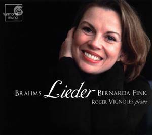 Mais voilà, vous nous l'avez donnée, cette idée de départ : l'amour et le printemps ! Un disque tout entier qui parle d'amour, amour malheureux ou heureux, teinté d'ironie parfois, et un disque emplis de sentiments printaniers, mais avec cet allant à la fois populaire et retenu propre à Brahms. L'amour de cette musique magnifique, également, avec une joie si évidente de chanter et pourtant pas un excès, au contraire une sorte d'intériorité mais heureuse – on ne sait pourquoi on associe souvent intériorité et morosité. Cette pudeur des sentiments exprimés, quelle que soit leur diversité, donne une grande unité à ce récital, dont on sent le programme mûrement réfléchi. Il passe dans la voix de Bernarda Fink, toujours aussi magnifique pour ceux qui, malheureux mortels, ne la connaîtraient pas, une sorte de vibration, de jubilation presque, qu'on ne lui avait jamais entendu à ce point. Le timbre joue de sa chaleur et de sa clarté pour rendre avec beaucoup de classe la palpitation de l'émotion amoureuse, sans aucun effet. En dire plus reviendrait, pour le coup, à faire une déclaration d'amour à la chanteuse ; preuve d'ailleurs que son disque a parfaitement atteint son but.