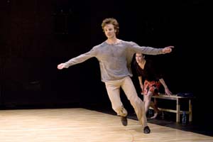 Sur le parquet de bois clair est tracé un cercle rouge, identique à ceux qui marquent les terrains de basket. Celui-ci servira, 45 minutes durant, de terrain de jeu aux deux interprètes, un homme et une femme, qui vont s'appliquer à déconstruire et décomposer lentement les pas de la valse. Elle est chaussée de chaussures de tango, lui porte un pantalon à pattes d'éléphant. Le couple qui se forme évoque l'atmosphère appliquée et sérieuse, un peu surannée aussi, des cours de danses de salon. Pourtant, leur vision de la valse, expliquée en douze étapes, est résolument moderne et conceptuelle. Chaque pas y est décomposé, à l'envers et à l'endroit, sans que jamais aucun interprète ne s'écarte du cercle rouge tracé sur le sol. Parfois les corps se frôlent ou se rejoignent, sur une bande son nostalgique qui va de Bourvil à Simon et Garfunkel. Parfois aussi, l'un ou l'autre se lance dans une course sautillante ou échevelée, pleine d'allégresse. Si Grégory Grosjean joue les beaux gosses à l'italienne, Michèle-Anne de Mey, avec ses cheveux courts et sa silhouette stricte manque un peu de la sensualité que l'on attend de cette danse sulfureuse. Peut-être tout simplement, au-delà du concept ou de l'exercice de style, même brillant, est-il ennuyeux de voir un couple valser quand il n'a pas les traits de Claudia Cardinale et d'Alain Delon dans Le Guépard.