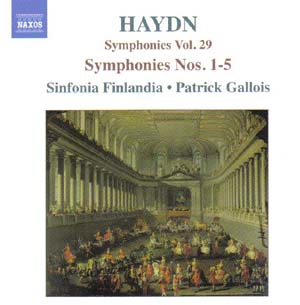 Le Sinfonia Finlandia étant un orchestre jouant sur instruments modernes, cet enregistrement n'intéressera pas les amateurs exclusifs d'interprétations « authentiques » sur instruments anciens. L'effectif orchestral ne dépasse pas la trentaine de musiciens, restituant assez fidèlement le nombre de musiciens que Haydn devait avoir à disposition pour la création de ses œuvres. La direction de Patrick Gallois, chef permanent de l'ensemble, est fine, précise et énergique. On pourra toutefois lui reprocher d'être parfois trop lisse, policé, avec un manque de contrastes et de nuances. Le continuo très (trop) discret : le clavecin est à peine audible sauf dans 3e mouvement de la Symphonie n°1 où l'équilibre des masses frise la perfection, et dans l'Andante de la Symphonie n°3. Malgré ces petits défauts, il s'agit d'une version tout à fait recommandable. L'orchestre possède une belle couleur et une bonne homogénéité, avec une mention particulière pour les cors.