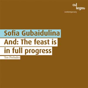 Après les conservatoires de Kazan et de Moscou, après des passages aux USA, elle s'installe durablement en Allemagne. Figure énigmatique par nature, recluse par choix, elle manifeste un esprit religieux sans références théologiques élues, son tempérament la guide vers une évidente austérité, une épuration soigneuse et une concentration serrée. L'écoute des deux œuvres sélectionnées la montre en quête de la sérénité, sourde aux mondanités car dépourvue d'artifice et proche d'une certaine méditation extatique (comme par exemple dans son Offertorium, son Concerto pour violon). Le Concerto pour violoncelle et orchestre sous-titré : And : The feast is in full progress date de 1993 et répond en majeure partie aux paramètres sus-décrits.